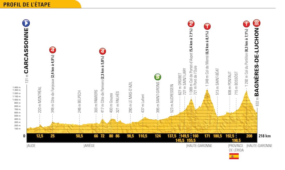 La 16ª, il 24 luglio: Carcassonne › Bagnères-de-Luchon (218 km)