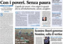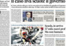 La maggior parte dei giornali apre sulle tensioni nel governo con il ministro dell’Economia Tria sulle nomine dei nuovi vertici di Cassa Depositi e Prestiti e su quelle fra il ministro del Lavoro Di Maio e il presidente dell’INPS Boeri sugli effetti del “decreto dignità”. Il Fatto, il Dubbio e il Giornale di Sicilia titolano invece sulle motivazioni della sentenza del processo sulla “trattativa” fra Stato e mafia depositate ieri, mentre il Giornale prosegue la sua campagna sulla nomina di un’amica di Di Maio nella sua segreteria.