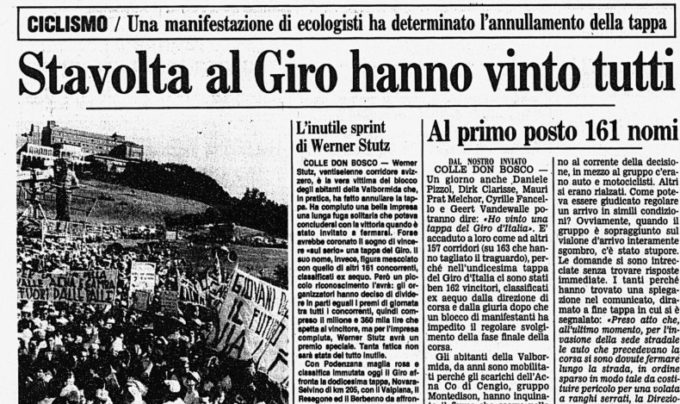 Le proteste della val Bormida ebbero un loro risalto nazionale nel giugno dello stesso anno, quando alcune migliaia di persone fermarono una tappa del Giro d’Italia che sarebbe dovuta passare nella zona. L’organizzazione fu costretta ad annullare la tappa.
