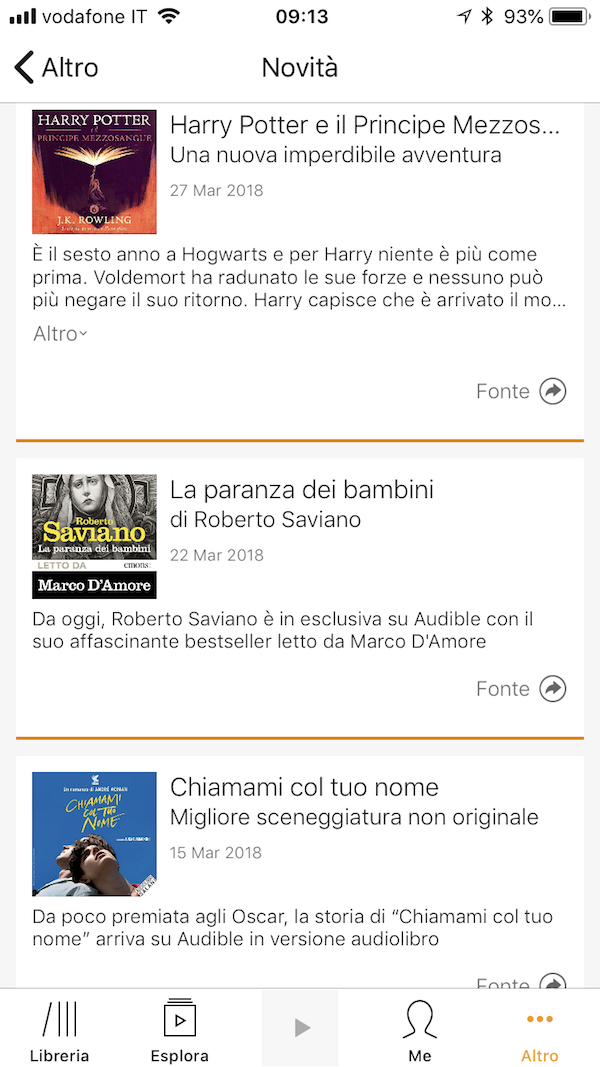 L’app di Audible per dispositivi iOS