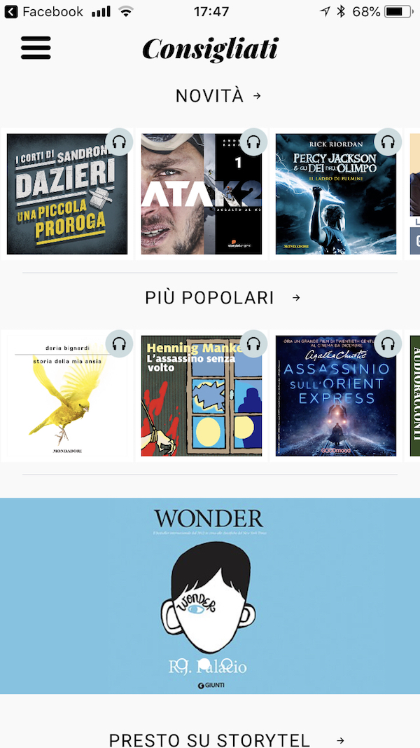 Storytel ha un catalogo di 80mila audiolibri in diverse lingue, di cui più di 40mila in inglese. Per ora quelli in italiano sono 1.500, ma entro la fine del 2018 dovrebbero arrivare a 3mila. Ogni anno circa 5mila libri vengono aggiunti al catalogo, tra cui quelli di alcune case editrici in esclusiva: per l’Italia sono Giunti, DeA Planeta e Marsilio – l’editore dei gialli di Camilla Läckberg, Stieg Larsson ed Henning Mankell, tra gli altri. Nei prossimi mesi poi arriveranno altri contenuti audio originali che potrete ascoltare solo su Storytel: i “Docs”, documentari su temi di attualità con una durata compresa tra i 30 e i 60 minuti (gli audiolibri durano dieci ore in media), dei podcast in sostanza.