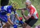 Una delle cose che caratterizzano il Tour de France – la più nota gara ciclistica su strada a tappe, nonché uno dei più importanti eventi sportivi al mondo – è la gente che si mette ai lati della strada per guardarlo. Anche quest’anno, lungo i percorsi di ogni tappa, molte persone hanno trovato il modo di assistere al passaggio dei corridori in posizioni privilegiate, come chi si è seduto un po’ in disparte su una roccia o chi si è appeso a un palo. Altri si sono messi costumi rosa da coniglio o ingombranti ali piumate, ma c’è anche chi si è semplicemente portato una seggiolina per mettersi comodo.