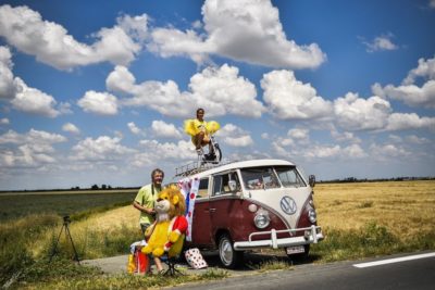 Una delle cose che caratterizzano il Tour de France – la più nota gara ciclistica su strada a tappe, nonché uno dei più importanti eventi sportivi al mondo – è la gente che si mette ai lati della strada per guardarlo. Anche quest’anno, lungo i percorsi di ogni tappa, molte persone hanno trovato il modo di assistere al passaggio dei corridori in posizioni privilegiate, come chi si è seduto un po’ in disparte su una roccia o chi si è appeso a un palo. Altri si sono messi costumi rosa da coniglio o ingombranti ali piumate, ma c’è anche chi si è semplicemente portato una seggiolina per mettersi comodo.