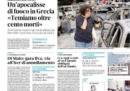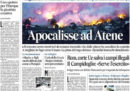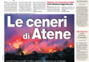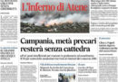 La maggior parte dei giornali di oggi si occupa in apertura degli incendi in Grecia che hanno provocato oltre settanta morti accertati e danni gravissimi, anche se si teme che il numero delle vittime possa essere ancora più alto. Il Sole 24 Ore apre invece sull’attesa per la decisione del ministro Di Maio sulla gara per la vendita dell’ILVA, il Fatto segue ancora le voci sui nuovi vertici della RAI, e il Giornale, Libero e il Tempo si occupano della decisione della Corte europea sullo sgombero dei campi rom. I giornali sportivi seguono le notizie sul calciomercato del Milan dopo i cambiamenti al vertice della società.