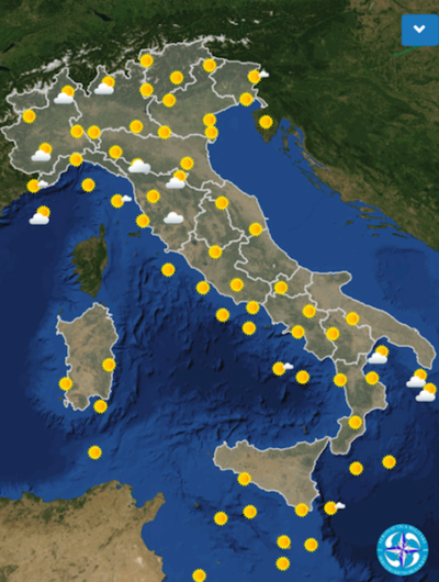 Al Nord la giornata inizierà con cielo sereno su tutte le regioni fin dal mattino. Nel pomeriggio potrebbero esserci dei temporali nelle ore più calde, soprattutto a ridosso dei monti. Ci sarà cielo soleggiato anche al Centro, con qualche nuvola nel pomeriggio sul settore appenninico, e la possibilità di deboli temporali.