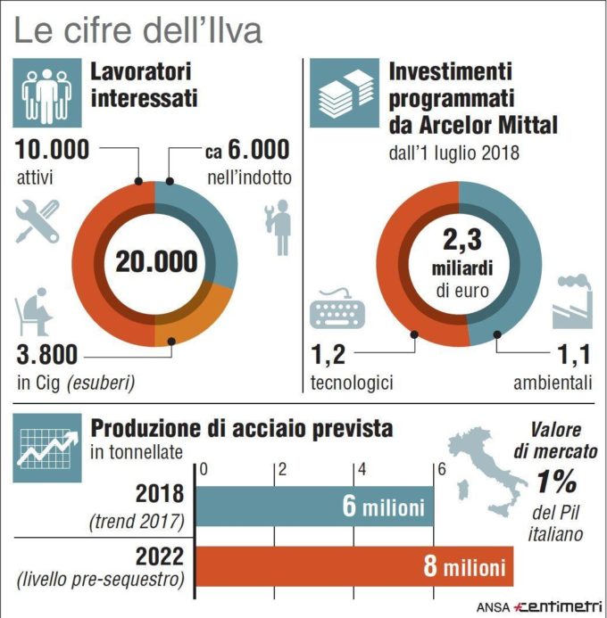 Dal 2015 la famiglia Riva ha perso il controllo della società che è finita in mani pubbliche. A sua volta, il governo ha messo la società all’asta e il bando è stato vinto da ArcelorMittal, che come parte del pacchetto di acquisto ha presentato un piano di bonifica ambientale e un piano industriale, che prevede alcune migliaia di esuberi. Di Maio ha fatto sapere che non ha apprezzato il piano, approvato dal precedente governo, e ha chiesto alla società nuovi impegni, quelli che dovrebbero essere presentati alla riunione di oggi. Di Maio ha anche detto che la gara potrebbe non essere stata organizzata regolarmente a causa di errori commessi dai suoi predecessori e che quindi potrebbe essere annullata (il che, se fosse vero, permetterebbe alla società di rivalersi sul governo italiano per le perdite subite nell’operazione).