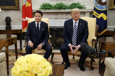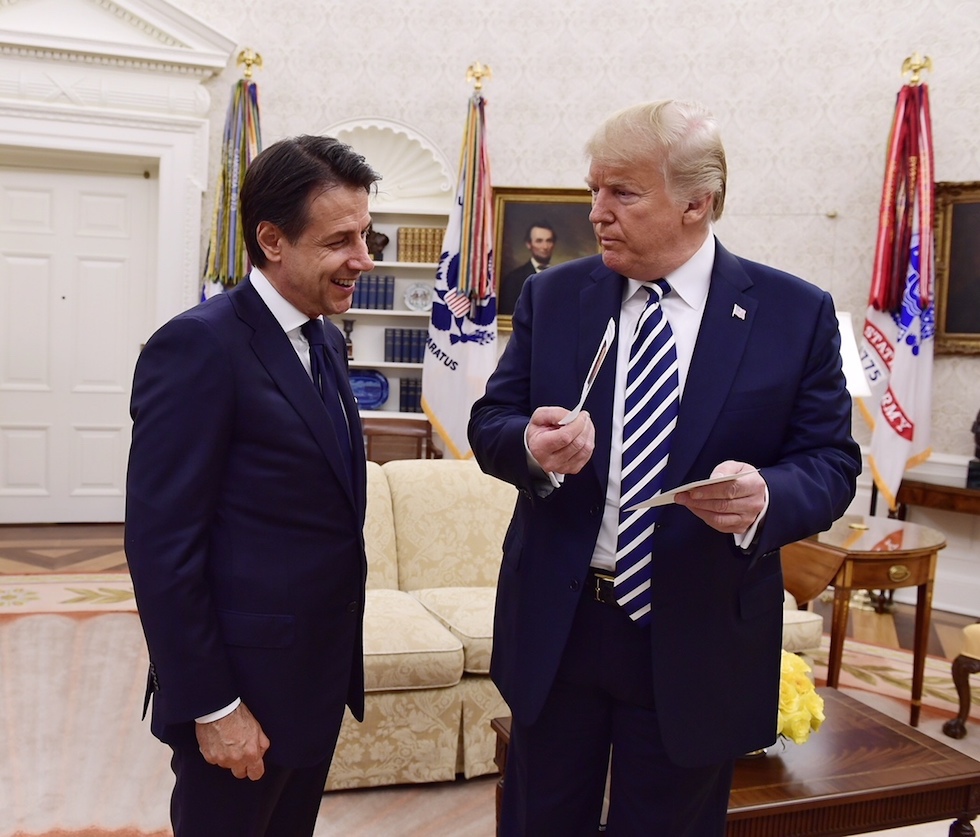 Il presidente del Consiglio Giuseppe Conte e il presidente degli Stati Uniti Donald Trump nella Casa Bianca, Washington DC, 30 luglio 2018