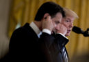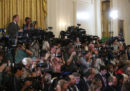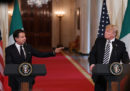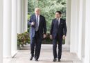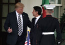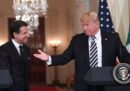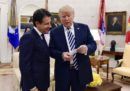 Il presidente del Consiglio italiano Giuseppe Conte e il presidente degli Stati Uniti Donald Trump si sono incontrati lunedì alla Casa Bianca: hanno fatto una riunione a porte chiuse e poi hanno tenuto una conferenza stampa congiunta, e parlato di Nord Africa, immigrazione, gasdotto TAP e rapporti commerciali bilaterali. Trump e Conte si erano già incontrati al G7 dello scorso giugno in Canada, ma quella di ieri è stata la prima loro riunione bilaterale. All’incontro erano presenti giornalisti e fotografi, che lo hanno raccontato per immagini: strette di mano (senza troppe complicazioni), qualche sguardo annoiato, soprattutto sorrisi tra loro e per le macchine fotografiche.