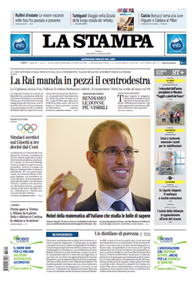Forza Italia e Lega si dividono sul presidente della RAI, il rapporto SVIMEZ, e il matematico italiano vincitore della medaglia Fields