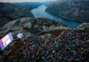 Per promuovere Mission: Impossible Fallout – il sesto film della serie, che in Italia uscirà a fine agosto – è stata organizzata una proiezione all’aperto, in Norvegia, sulla roccia nota Preikestolen (o Pulpit Rock, in inglese). È una rupe con uno strapiombo di diverse centinaia di metri sul Lysefjord, molto fotogenica e per questo molto nota. La proiezione è stata fatta lì perché nel novembre 2017 ci girarono una scena del film, il cui protagonista è sempre Tom Cruise. Solo che la scena del film è ambientata in India.