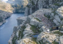 Si calcola che Preikestolen sia visitato ogni anno da 200mila persone. Alla proiezione hanno partecipato in circa duemila: è finita alle due di notte e le persone sono dovute scendere per un sentiero, preventivamente illuminato.