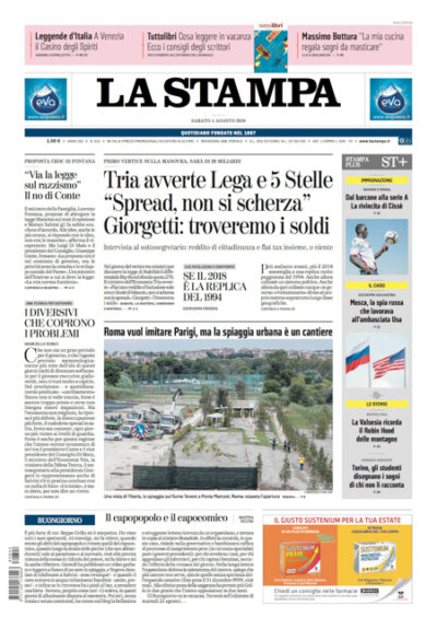 Ci sono pochi titoli uguali, sulle prime pagine di oggi. Si parla di varie questioni che interessano il governo e il ministero dell’Economia, e in particolare di cosa succederà a due delle principali promesse della campagna elettorale, flat tax e reddito di cittadinanza. Si parla anche della proposta del ministro della Famiglia Lorenzo Fontana di abrogare la legge Mancino, con toni diversi. Sui quotidiani sportivi si parla di calciomercato, ovviamente, con una prima pagina per la Juventus, una per il Milan e una per l’Inter.