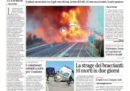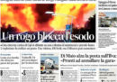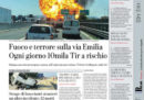 Quasi tutti i giornali di oggi aprono sull’incidente sull’autostrada A14 a Bologna, dove un’autocisterna che trasportava gpl è esplosa dopo aver tamponato altri camion in coda provocando un’esplosione che ha causato un morto e circa 70 feriti e il crollo di parte della carreggiata. Il Manifesto titola invece sull’incidente fra un furgone e un tir in Puglia nel quale sono morti dodici immigrati africani che lavoravano nei campi, Libero e il Tempo si occupano del rinvio di un anno dell’obbligo dei vaccini per l’iscrizione a scuola, e il Fatto segue le trattative fra i partiti per la nomina del nuovo presidente della RAI.