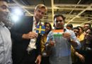 John Achillea, il direttore di IKEA India, su un tuktuk con il logo di IKEA durante un evento promozionale per l’apertura del primo negozio dell’azienda svedese a Hyderabad, il 5 luglio 2018 (NOAH SEELAM/AFP/Getty Images)