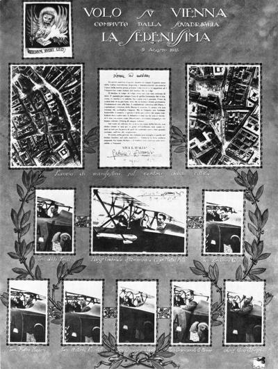 La mattina del 9 agosto 1918 sette biplani SVA sorvolarono la capitale austriaca distribuendo migliaia di volantini propagandistici, guidati dal più famoso poeta italiano dell'epoca