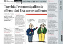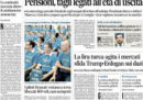 La maggior parte dei giornali apre sulla crisi dell’economia turca, con il valore della lira turca che ha perso oltre il 12% rispetto al dollaro nella giornata di ieri e circa il 30% dall’inizio dell’anno, e sulle possibili conseguenze sui mercati europei, soprattutto per i paesi che hanno maggiori investimenti in Turchia. Il Messaggero titola invece sui possibili tagli per le pensioni più alte, mentre il Fatto si occupa di quanto spende lo Stato per gli affitti.