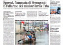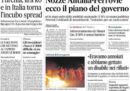 La maggior parte dei giornali di oggi apre sulla crisi economica turca e sulle conseguenze sui mercati europei e sui conti pubblici italiani, con lo spread che torna a salire raggiungendo quota 280. Il Manifesto, Avvenire e il Dubbio titolano invece sul destino della nave Aquarius della ong Sos Méditerranée, che dopo aver raccolto oltre 140 migranti nel Mediterraneo non trova un porto disponibile ad accoglierla, il Giornale e la Verità si preoccupano per i tagli alle pensioni più alte, Libero critica la proposta di Salvini per il ritorno alla leva militare obbligatoria, mentre il Messaggero e il Mattino titolano su un possibile piano del governo per l’integrazione fra Alitalia e Ferrovie.