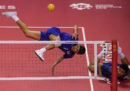 Agli Asian Games di Jakarta, in Indonesia, si vedono sport che in Europa conosciamo poco. Il sepak takraw per esempio è una specie di calcio-tennis, o calcio-pallavolo: comunque lo si chiami è molto spettacolare, sia in foto che in video. Altrettanto spettacolare è il nandao: un’arte marziale incentrata sull’uso di un’antica sciabola della tradizione cinese, in cui si salta moltissimo, si fanno giravolte e altre cose molto fotogeniche. Poi, naturalmente, agli Asian Games si nuota, si sollevano pesi e si gioca anche basket. C’è anche molto calcio, tra le foto più belle della settimana: con la Supercoppa Uefa vinta dall’Atletico Madrid, la prima partita in Serie A di Cristiano Ronaldo e i mondiali Under 20 femminili. E poi: matador spagnoli, lottatori indiani e un pescatore tedesco che non si è fermato in riva al fiume. Il fotografo ringrazia.