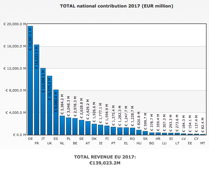 Bisogna poi tenere presente che oltre a chiedere soldi ai paesi, l’Unione Europa investe soldi in quei paesi. Sempre nel 2017 ha per esempio speso in Italia più di 9 miliardi di euro.