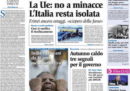 Tutti i giornali si dedicano estesamente al caso Diciotti con inchieste, interviste e analisi. Più in basso compaiono le ipotesi su come le autorità italiane intendono demolire ciò che rimane del ponte Morandi a Genova. Oggi si gioca inoltre la Serie A: sono in programma due partite interessanti come Juventus-Lazio e Napoli-Milan.