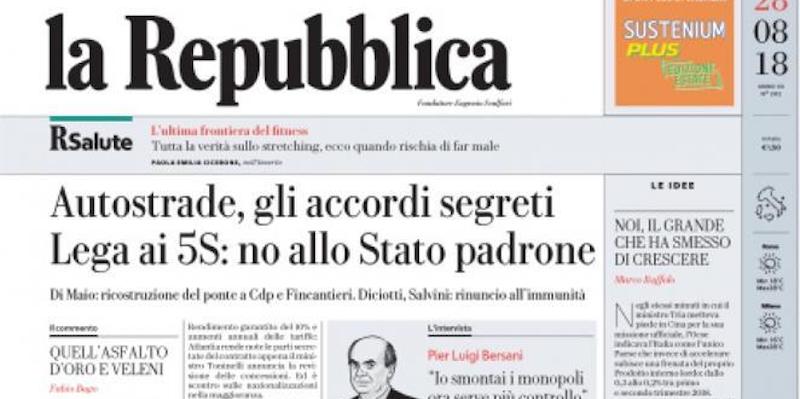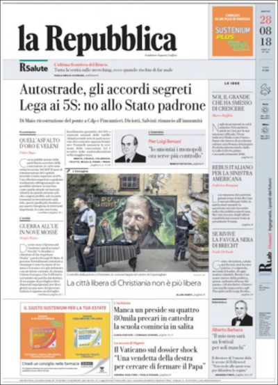 Le prime pagine di martedì 28 agosto 2018