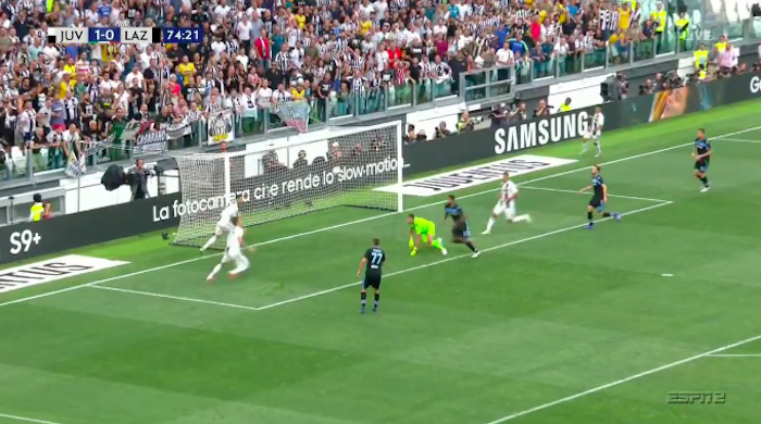 I due tappetini bianchi della Juventus inquadrati durante il gol di Mario Mandzukic alla Lazio (ESPN)