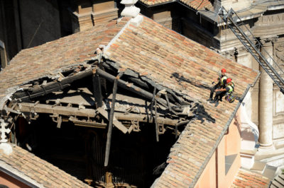 È crollato il tetto della chiesa di San Giuseppe dei Falegnami a Roma, non ci sono feriti