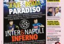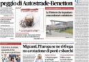 Il Corriere ha uno scoop o presunto tale, in prima pagina, sulle intenzioni – e la necessità – di Matteo Salvini di fondare un nuovo partito; ma poi mette l’articolo a pagina 9, non si capisce bene perché. Gli altri fanno ancora fatica a trovare notizie significative sia tra la politica che tra le vicende collegate – la questione Autostrade, per esempio – e quindi alcuni hanno risolto l’incertezza usando delle foto molto grandi della chiesa il cui tetto è crollato ieri nel centro di Roma. Per il resto, i sorteggi dei gironi della Champions League.