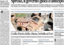 Il Corriere sostiene che Salvini voglia – e soprattutto debba – fondare un nuovo partito; per il resto, poche grandi notizie e molte grandi foto della chiesa di Roma il cui tetto è crollato