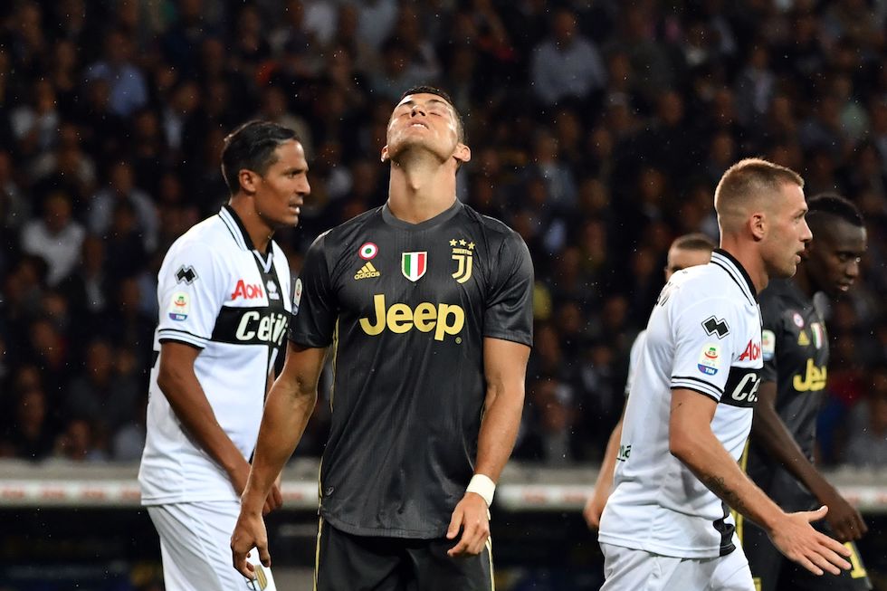 Ronaldo dopo una conclusione sbagliata contro il Parma (ANDREAS SOLARO/AFP/Getty Images)
