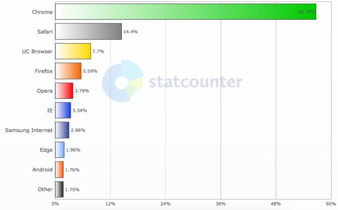 In dieci anni, Chrome ha contribuito a fare evolvere il Web verso standard aperti, per esempio privilegiando il sistema HTML5 a quello proprietario di Flash Adobe per i contenuti multimediali. Dopo Chrome, il browser più usato è Safari di Apple. Firefox di Mozilla, browser completamente gratuito e open-source che più di tutti ha subìto la concorrenza di Google nel settore, alla fine del 2009 era usato da circa il 39 per cento degli utenti, ora da meno del 6 per cento. Le rilevazioni variano se si tiene solo conto dei sistemi desktop, in questo caso Firefox è al secondo posto intorno al 12 per cento.