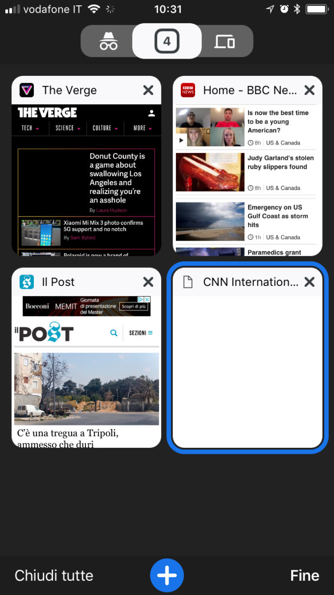 Anche sui dispositivi mobili, Chrome appare molto più arrotondato e con icone più grandi e facili da distinguere. L’elenco delle schede aperte è più chiaro e mostra una lista di anteprime, tra le quali scegliere la scheda a cui passare. In precedenza le anteprime erano mostrate a tutto schermo ed era più difficoltoso identificare quella desiderata da attivare.
