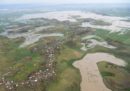 Campi di riso e granoturco danneggiati dal tifone e allagati da un fiume esondato ad Alcala, nelle Filippine, 16 settembre 2018 (TED ALJIBE/AFP/Getty Images)