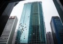 Finestre di un centro commerciale rotte dal tifone a Hong Kong, 16 settembre 2018 (Lam Yik Fei/Getty Images)