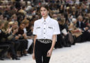 Alla fine della sfilata Lagerfeld è uscito come al solito per ricevere l’applauso del pubblico, stavolta affacciandosi da un molo di legno insieme a Virginie Ward, direttrice dello studio di Chanel, suo braccio destro e considerata il suo più probabile successore.