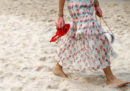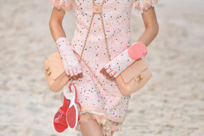 Chi ha già nostalgia del mare e dell’estate farà fatica a guardare le immagini della sfilata di Chanel, che si è appena conclusa nella solita sede del Grand Palais a Parigi. Per presentare la collezione per la primavera/estate 2019, il direttore creativo Karl Lagerfeld ha ricreato una spiaggia, con sabbia bianca presa da una cava vicina (a cui verrà restituita) e onde attivate da un sistema di pistoni nascosti: tutt’attorno c’erano alte sedie con modelli vestiti da bagnini e Pamela Anderson di Baywatch tra il pubblico, mentre le modelle passeggiavano a piedi nudi, tenendo in mano sandaletti trasparenti marchiati Chanel.