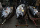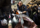 Tonni prima dell’asta di inizio anno al mercato del pesce di Tsukiji, Tokyo, 5 gennaio 2017 (Tomohiro Ohsumi/Getty Images)