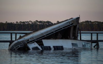 Un hangar di barche distrutto a Panama City, Florida, 11 ottobre 2018 (Chris O’Meara-Pool/Getty Images)