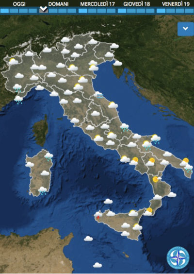 Le mappe e le previsioni arrivano dal sito dell’Aeronautica Militare, quello che dovete visitare se volete previsioni affidabili e stare alla larga da allarmis