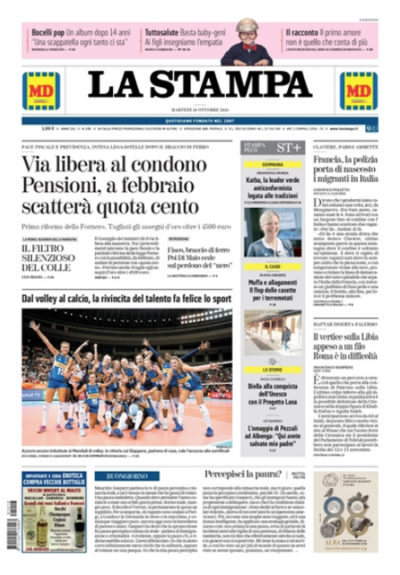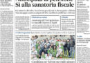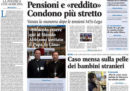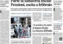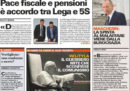Tutti i giornali di oggi dedicano l’apertura all’accordo raggiunto ieri sera dal Consiglio dei ministri per l’approvazione della manovra economica, che comprende il condono fiscale fino a centomila euro, le modifiche delle pensioni con l’introduzione della “quota 100” e il taglio delle pensioni superiori a 4.500 euro. Il Fatto titola invece sull’accusa del governo italiano alla Francia di aver riportato in Italia due migranti senza autorizzazione, mentre Libero è preoccupato per i costi dell’influenza sulla sanità pubblica.