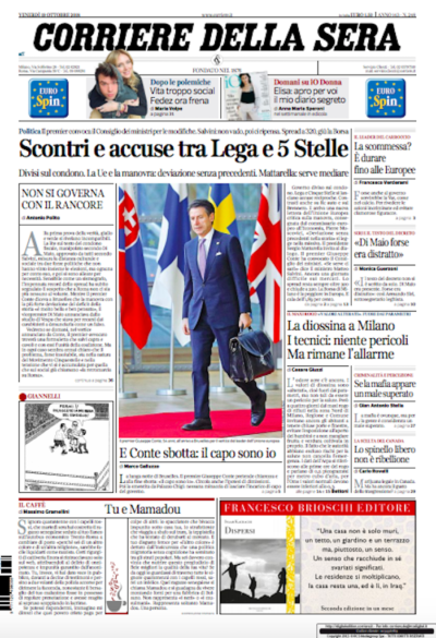 I titoli sono tutti sulle tensioni dentro il governo, tra Lega e Movimento 5 Stelle, ma c'è spazio anche per la lettera della Commissione Europea sulla manovra fiscale