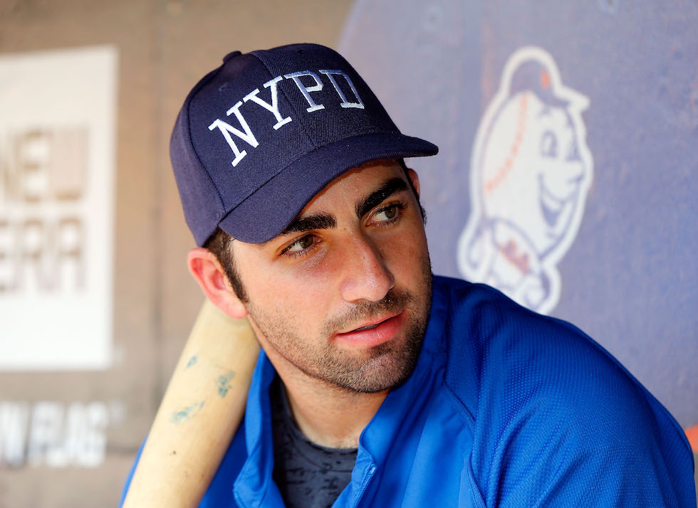 Un giocatore di baseball dei New York Mets con un cappello con il logo della polizia di New York (Jim McIsaac/Getty Images)
