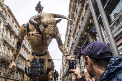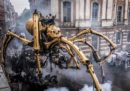 Tra l’1 e il 2 novembre a Tolosa, città del sud della Francia, sono comparsi un ragno e un minotauro giganti: sono enormi creature meccaniche create da François Delarozière, direttore artistico e principale forza creativa della compagnia teatrale francese La Machine, che lavora da anni con tecnici e designer per creare spettacoli pubblici attorno a progetti di questo tipo. Il minotauro e il ragno sono parte dello spettacolo “Il guardiano del tempio” e sono stati pensati per reinterpretare due figure della mitologia greca, Arianna (che diede a Teseo un gomitolo di lana per poter segnare la strada percorsa nel labirinto) e il Minotauro (creatura con il corpo di uomo e la testa di toro). Sono stati trasportati nella piazza del comune di Tolosa, passando tra le strade della città tra gli sguardi stupiti di abitanti e turisti.