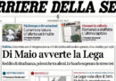 I giornali di oggi parlano soprattutto di maltempo – che ha fatto molti danni in Veneto – e dei problemi, all’interno della maggioranza di governo, riguardo al decreto legge “immigrazione e sicurezza” e al disegno di legge anticorruzione. I problemi riguardano, in breve, la Lega che sarebbe contraria alla sospensione della prescrizione dopo il primo grado proposta dal Movimento 5 Stelle; e il Movimento 5 Stelle che potrebbe invece creare problemi alla Lega sull decreto sicurezza. I giornali sportivi parlano invece delle vittorie di Inter e Juventus, contro Genoa e Cagliari.