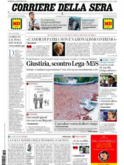 Le prime pagine di domenica 4 novembre 2018