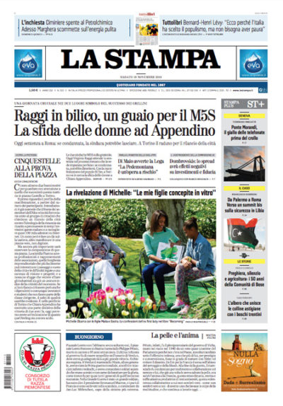 Per la maggior parte dei giornali di oggi la notizia di apertura è il processo per falso contro la sindaca di Roma Virginia Raggi, per la quale il pubblico ministero ha chiesto una condanna a 10 mesi, e le possibili conseguenze della sentenza dopo che il leader del Movimento 5 Stelle Di Maio ha detto che il codice etico del partito che prevede le dimissioni in caso di condanna verrà applicato anche nel suo caso. Il Corriere della Sera titola invece sulla discussione fra governo e Unione Europea sulla manovra economica, Avvenire si preoccupa per l’aumento del possesso di armi a seguito dell’approvazione delle nuove regole sulla legittima difesa, e Libero attacca Rocco Casalino per il video del 2004 in cui sostiene, forse per provocazione, che vecchi e ragazzi down gli fanno schifo.