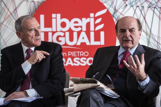 Pietro Grasso e Pier Luigi Bersani presentano il programma economico di Liberi e Uguali, Roma, 15 febbraio 2018 (Roberto Monaldo / LaPresse)