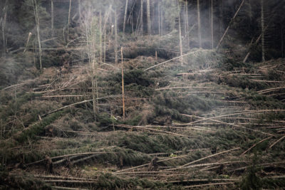 La settimana scorsa il fotografo di Getty Images Vittorio Zunino Celotto è stato nell’altopiano di Asiago, in provincia di Vicenza, in Veneto, una delle zone più colpite dalle forti piogge e vento a fine ottobre. Nella zona dell’altopiano si stima che siano caduti circa 300mila alberi: è ancora difficile calcolare i danni dal punto di vista economico e ambientale, e le verifiche sono attualmente in corso, ma sicuramente ci vorranno anni prima che i boschi tornino in condizioni normali. Nelle foto di Zunino Celotto si vedono gli alberi sradicati o rasi al suolo.