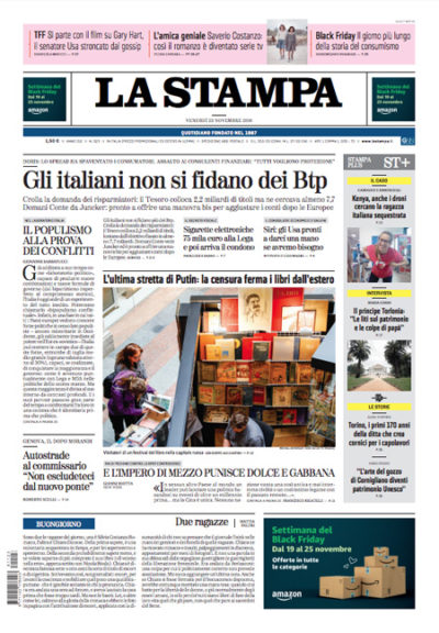 È sempre la situazione economica la notizia in apertura sui quotidiani di oggi, con l’incontro di sabato fra il presidente della Commissione Europea Juncker e il presidente del Consiglio Conte, che secondo i giornali dovrebbe proporre una nuova manovra da rinviare però a dopo le elezioni europee. A questa notizia vengono associate le preoccupazioni del ministro dell’Economia Tria sugli effetti dell’aumento dello spread su prestiti e mutui, l’andamento negativo dell’asta dei BTP, e la rimozione del condono dal decreto fiscale.