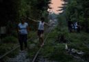 Spingono carretti di fortuna sulle rotaie del treno della capitale delle Filippine, trasportando passeggeri tra un treno e l'altro